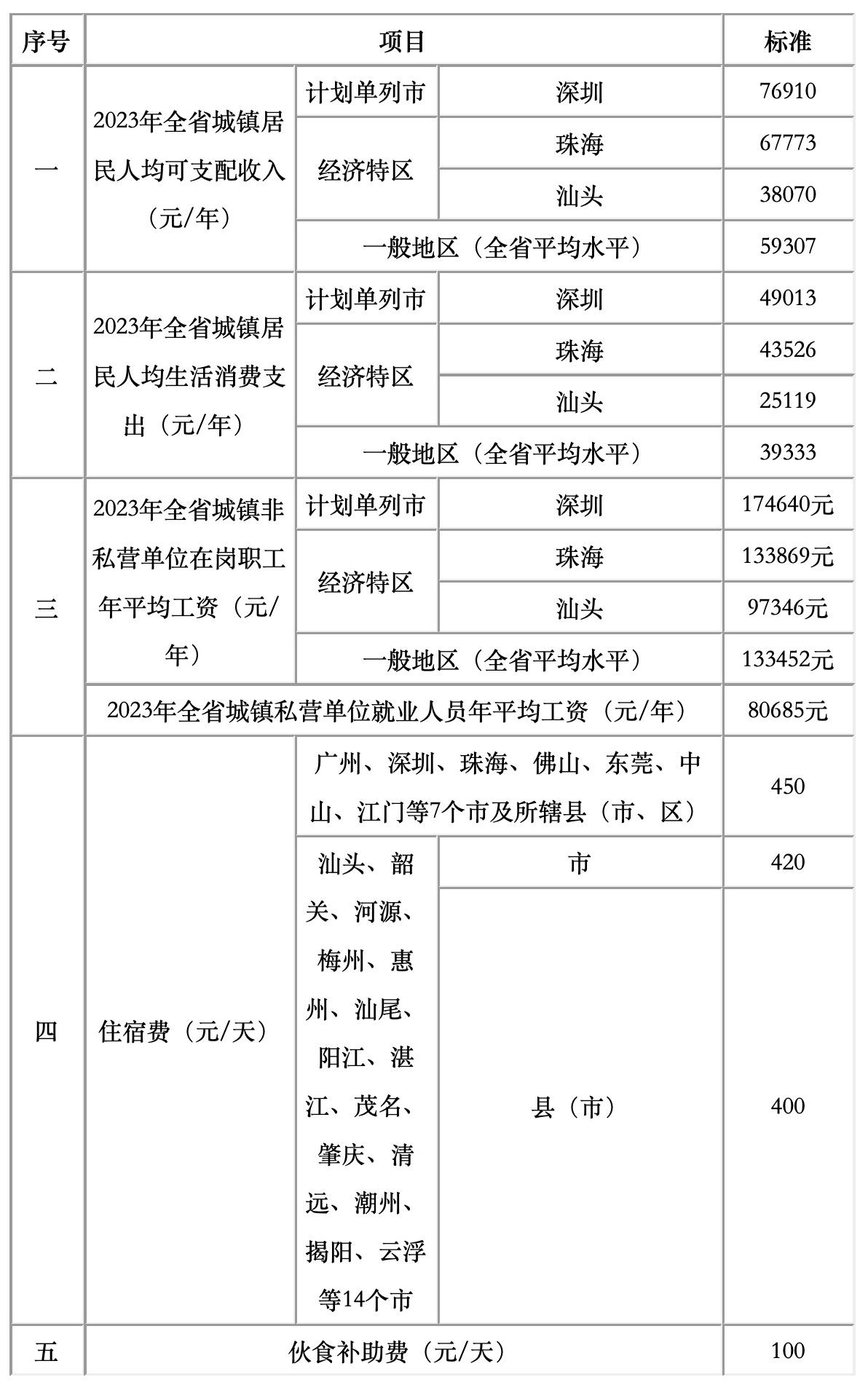 根据《广东省高级人民法院关于人身损害赔偿计算标准适用问题的通知》(粤高法〔2023〕105号)的规定,从2023年起,广东省高级人民法院不再转发年度赔偿计算标准,相关统计数据由当事人在一审辩论终结前根据政府统计部门发布信息自行查询提供。本文所载数据,由侵权法资讯自行查询和汇总,仅供参考。
