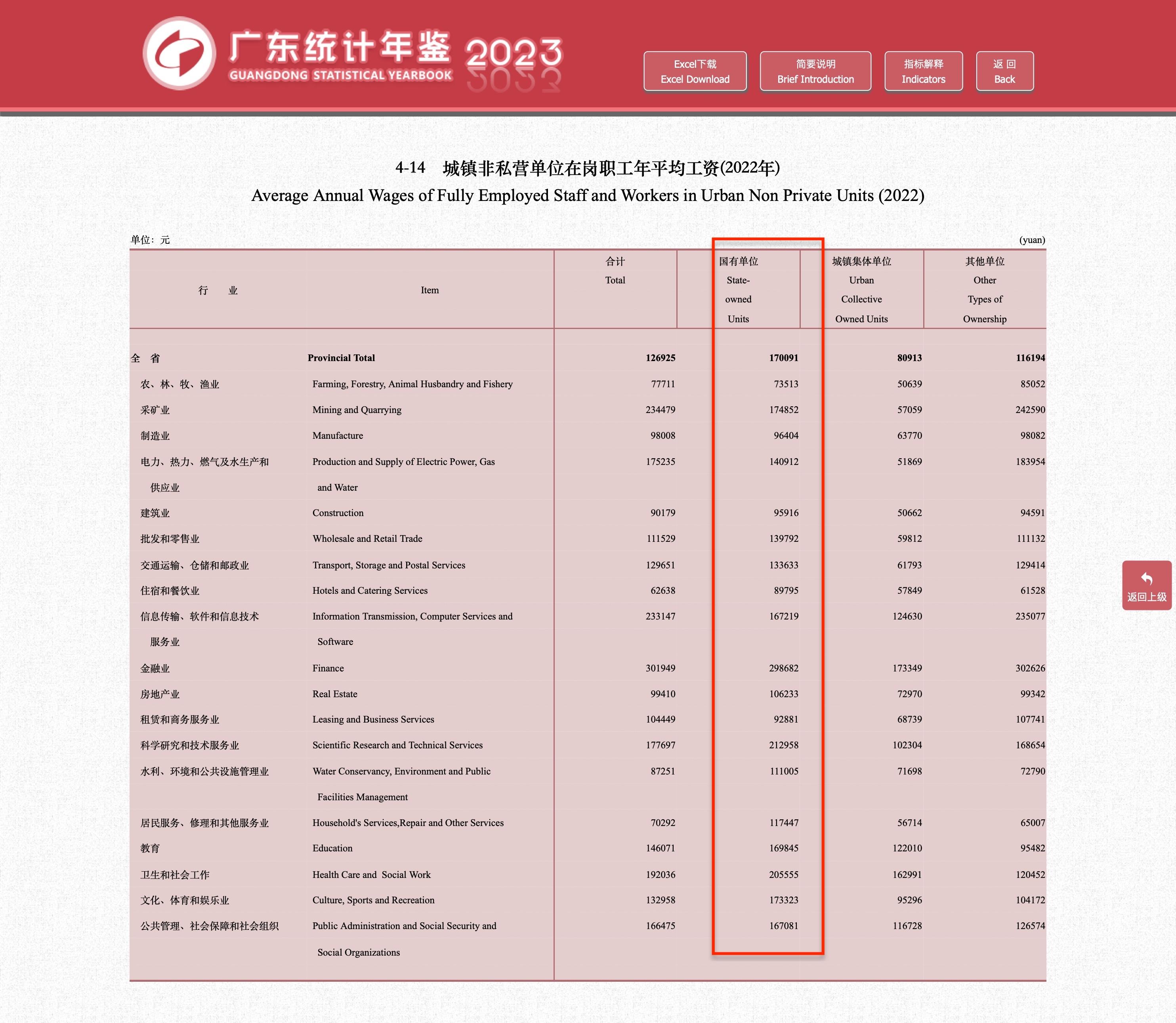 10、2023年广东城镇非私营单位在岗职工年平均工资和2023年广东城镇私营单位就业人员年平均工资,来自广东省统计局于2024年6月21日发布的《2023年广东城镇单位就业人员年平均工资情况》。
