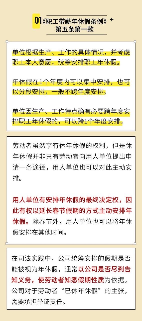 春节延长假=带薪年休假?公司能统筹安排员工的年休假吗?